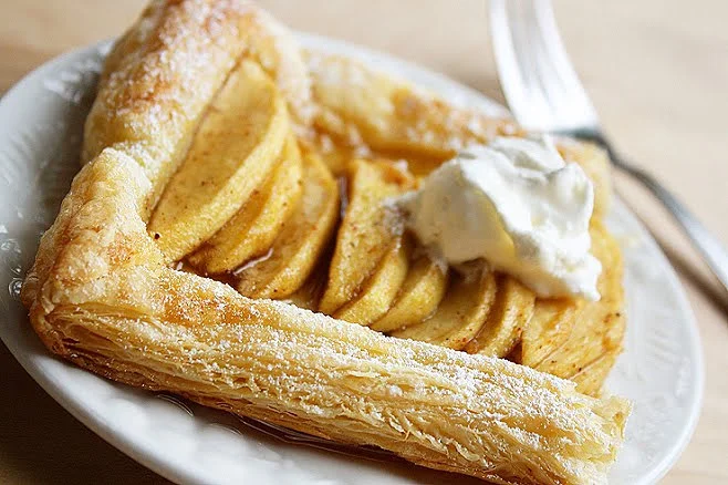 Real puff pastry requires secret codes, precise turns, subtle finger marks and the Knights Templar handshake. Originally pastry was made from just flour and water and was the container in which a stew was cooked – like an oven within an oven. It was hard and inedible, you cracked it open when the food was cooked, ate the stew and threw away the pastry. Because the peasants were so hungry, they started eating the pastry case which was horrible, so the cooks added salt and some sort of fat like goose fat, lard, oil or butter to make it more palatable. The rest is history – pastry making became an art form and there are chefs in France who have only ever been patissiers all their lives.
